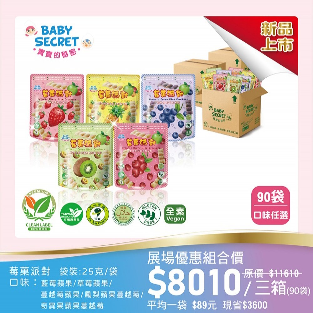 【BABY SECRET 寶寶的秘密 】 莓菓派對有機米餅~90袋